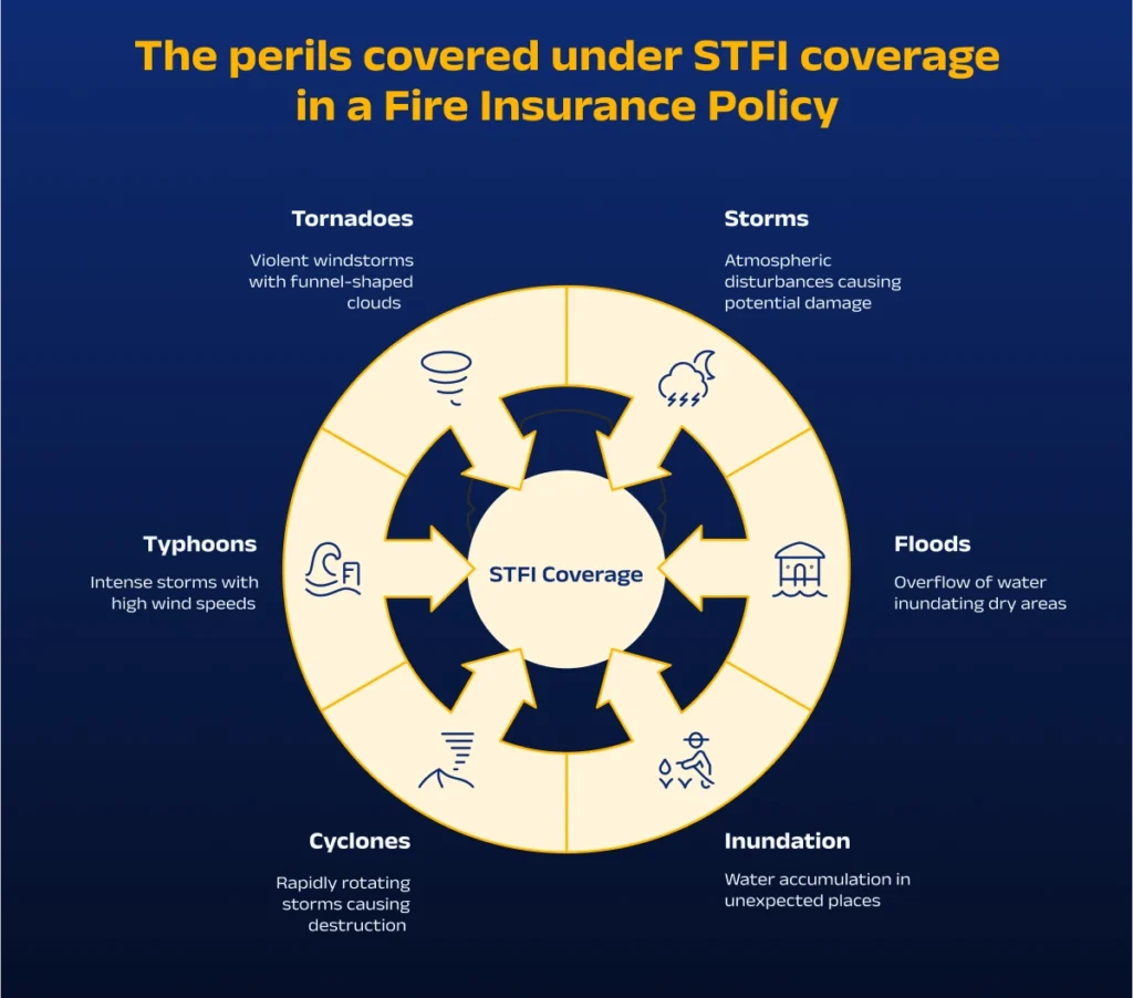 Business owners who own or operate commercial properties, offices, factories, or warehouses may need STFI coverage as part of their Fire Insurance. This coverage protects their assets and operations against the potential damages caused by storms, tempests, floods, or inundation. So, any business which needs protection from natural calamities should take STFI cover as part of their standard SFSP Policy.