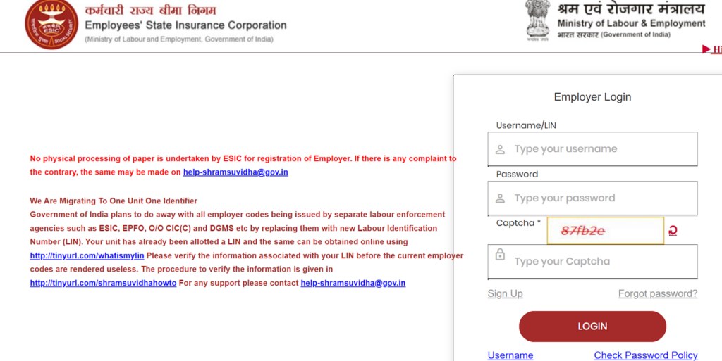If you are a new employer, click on ‘Sign Up’ link and start the esic new registration process.